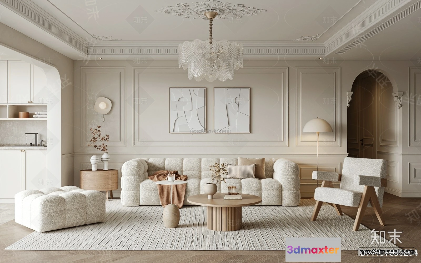 Cream Style Interior 3D Blocks – Living Room 3D Model – 163 – Living room 3D Model – VRAY