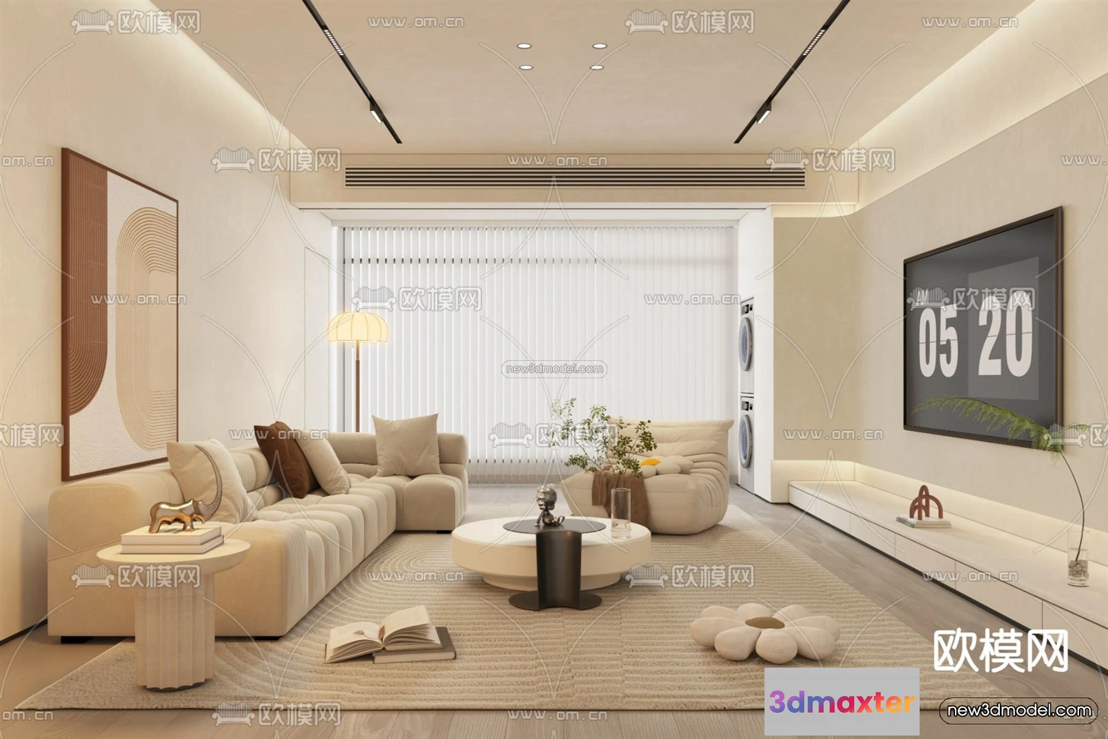 Cream Style Interior 3D Blocks – Living Room 3D Model – 166 – Living room 3D Model – VRAY
