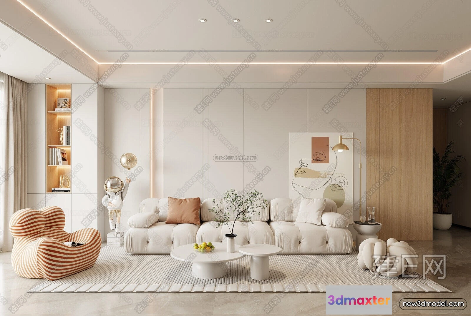 - Name: Cream Style Interior 3D Blocks – Living Room 3D Model – 168