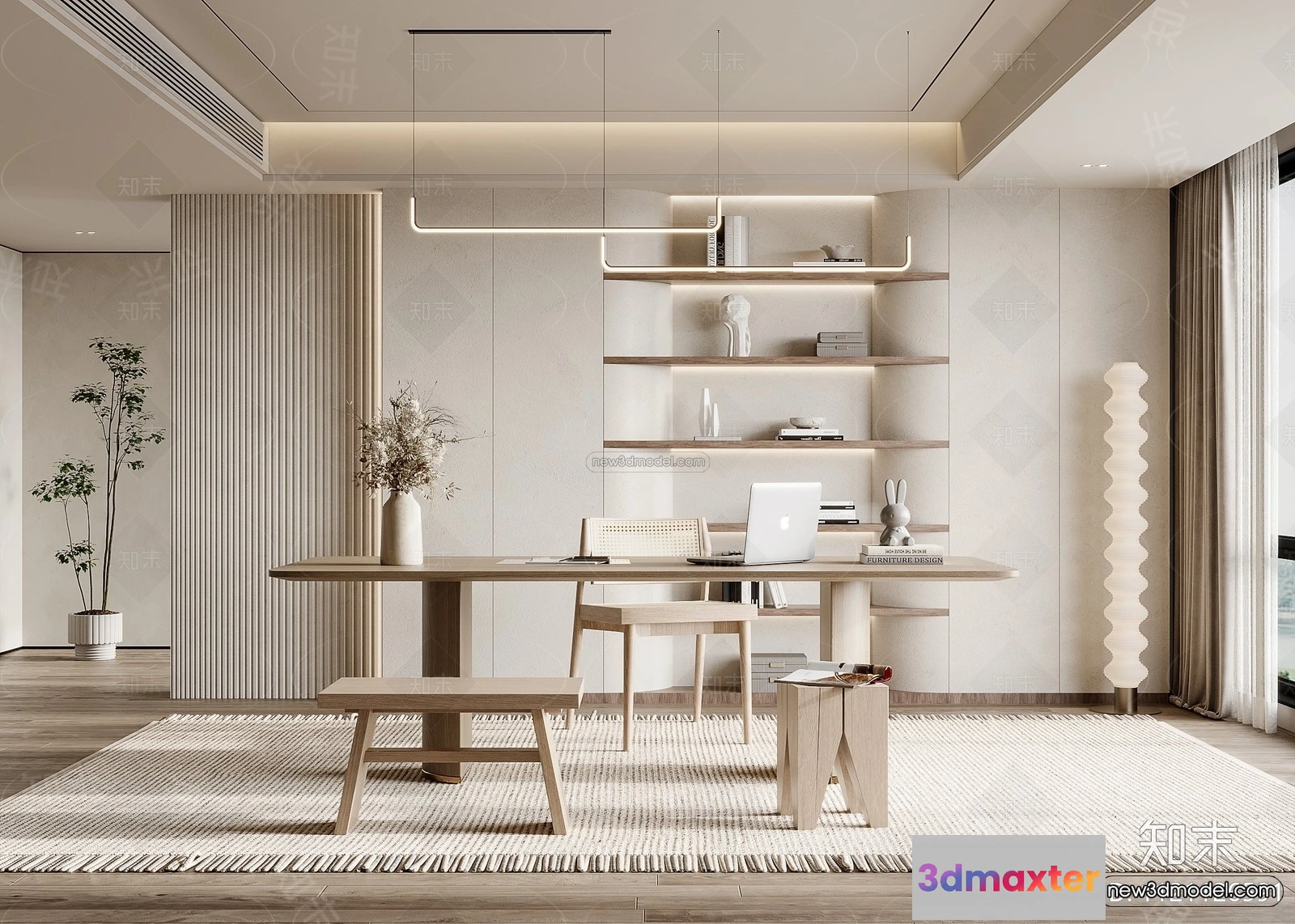 3D Models / 3D Scenes / Interior / Office Home / Cream Style Interior 3D Blocks – Study Room 3D Model – 291 3D Max