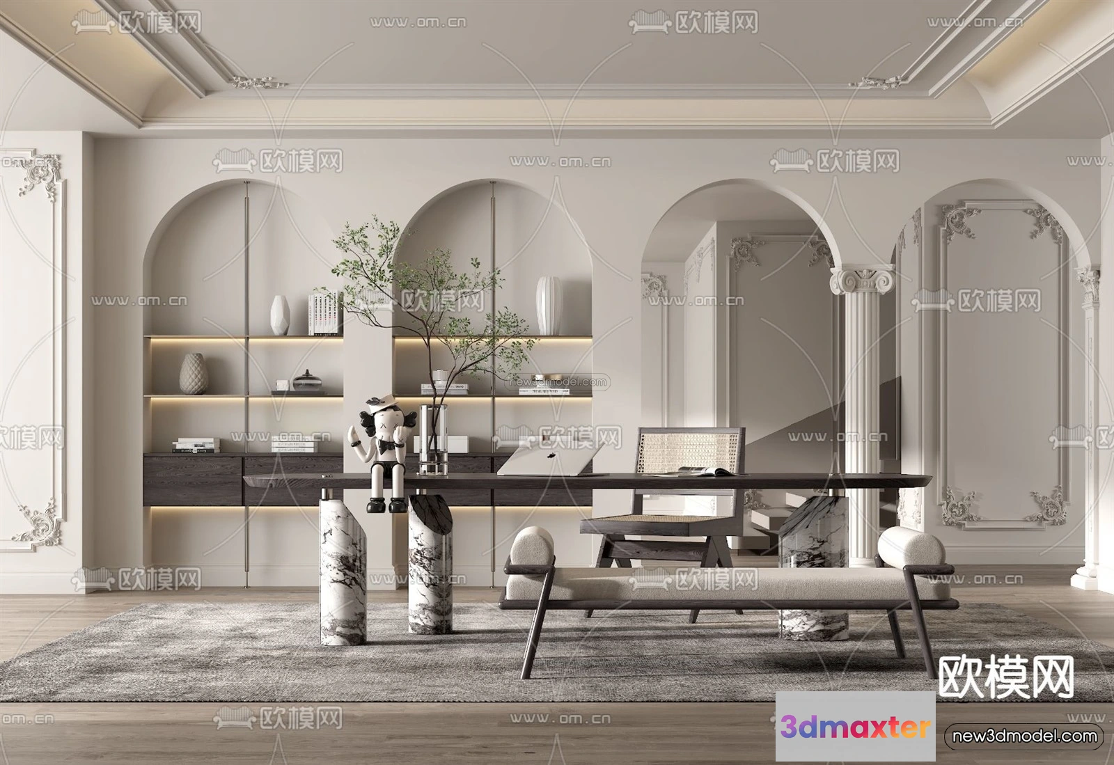 Cream Style Interior 3D Blocks – Study Room 3D Model – 292 – Office Home 3D Model – VRAY