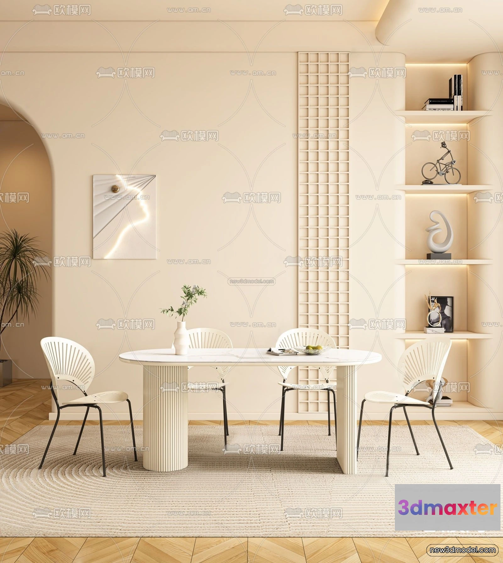 3D Models / 3D Scenes / Interior / Office Home / Cream Style Interior 3D Blocks – Study Room 3D Model – 293 3D Max