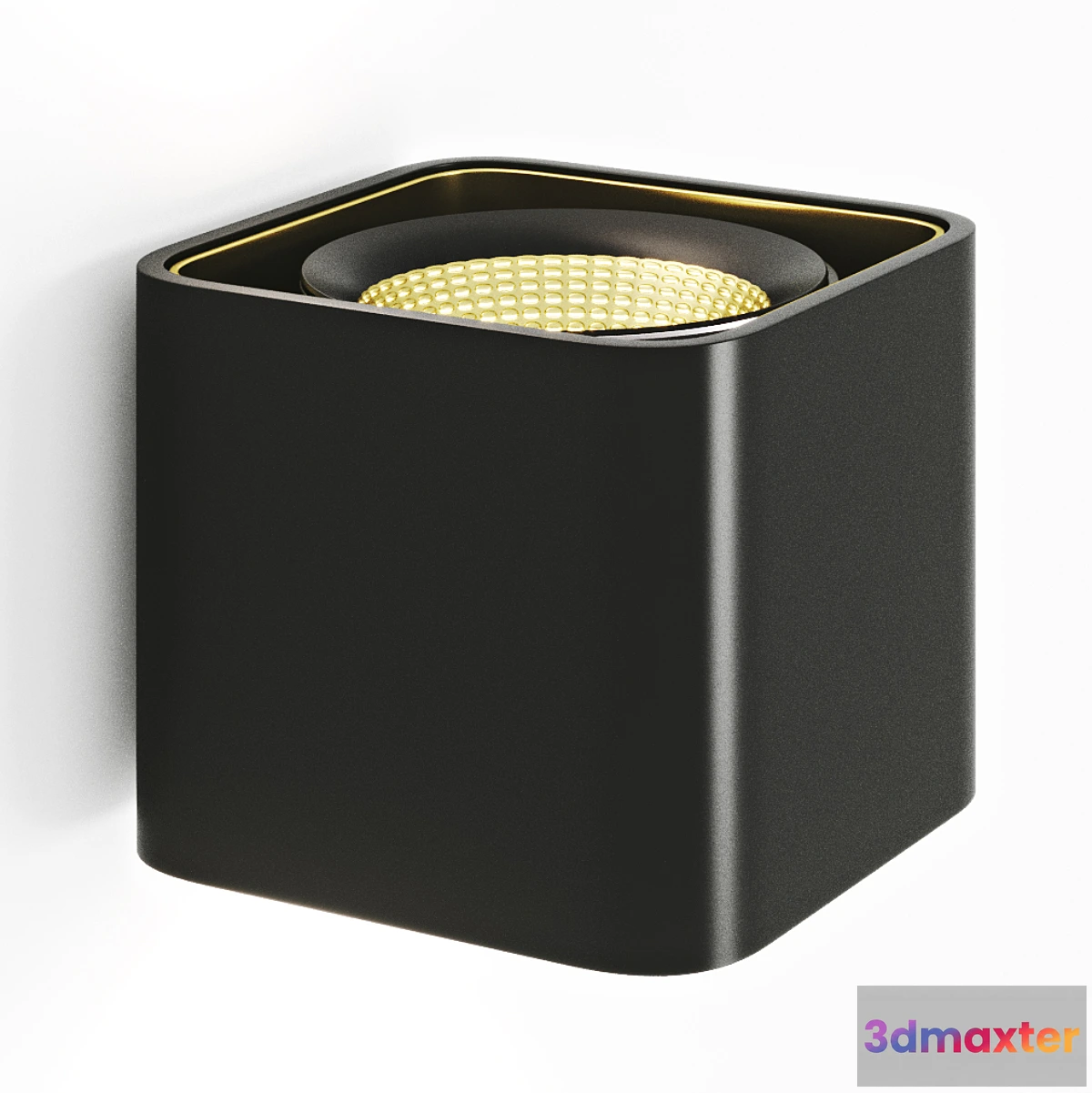 Surface-mounted wall lamp for interior lighting. The case of the square form from aluminum combines black and gold colors; is supplemented by a central turning part. It is used for wall illumination. Brightness: 455 lumens; power: 10 watts.