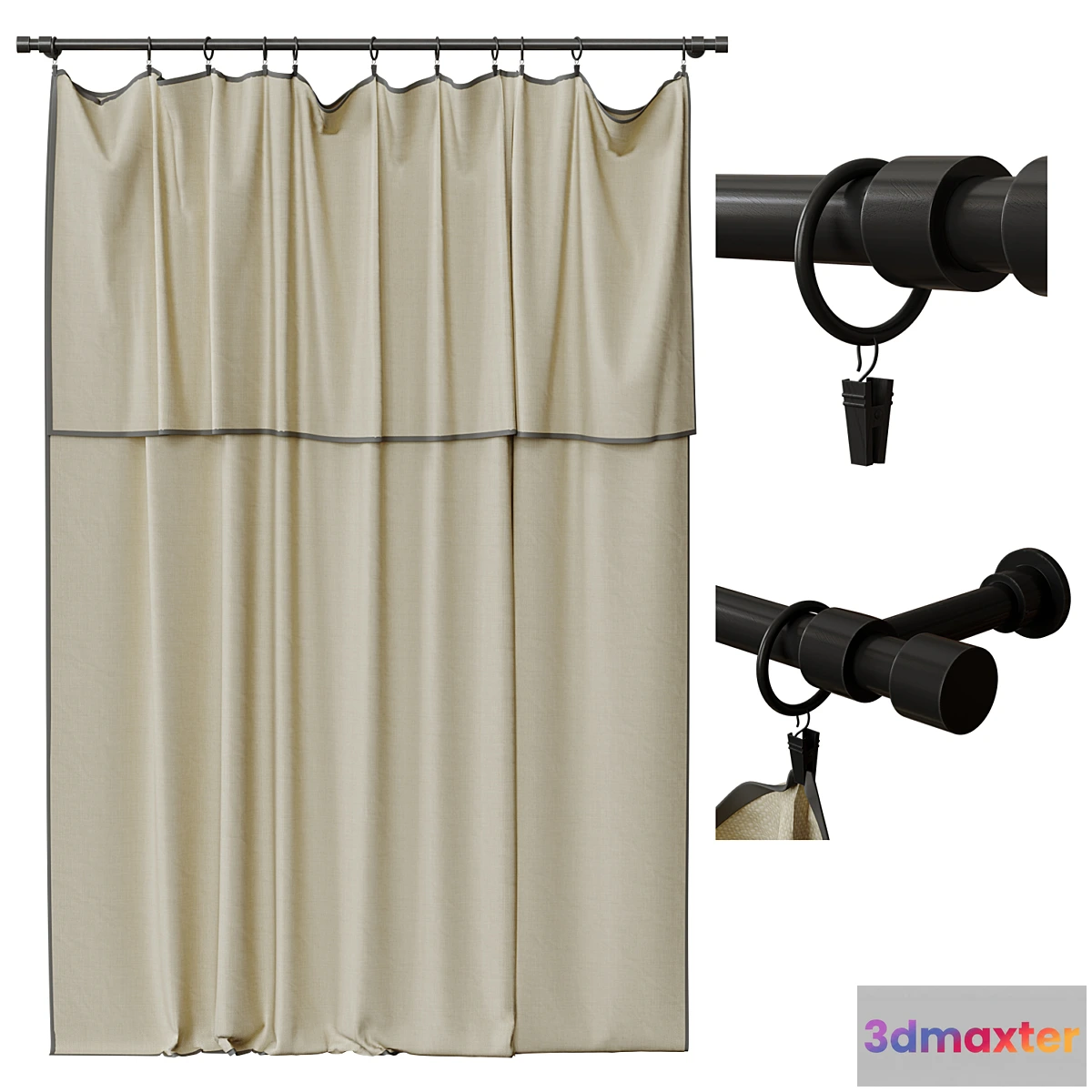 3D Models / Decoration / Curtain / Curtains on clothespins 3D Max