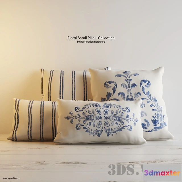 3D Models / Decoration / Pillows / decoration – RH pillows FLORAL SCROLL PILLOW COLLECTION 3D Max