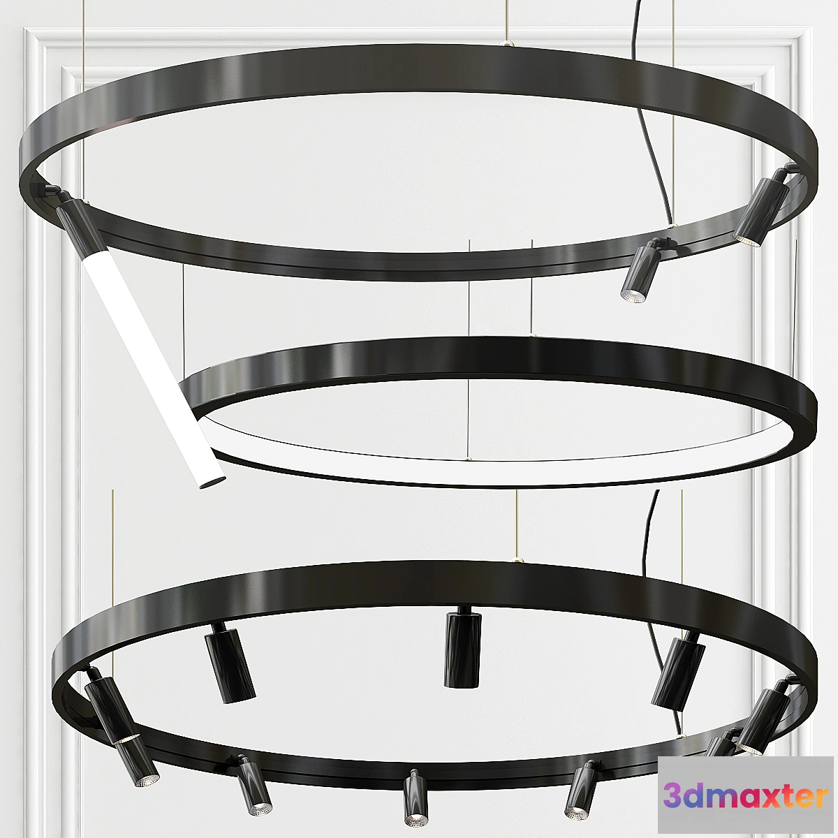 Super circular luminaire is able to scatter light around the perimeter. The loop can be suspended using steel cables based on one attachment point or several suspension points or on a steel rod hanging the ring from the air. Round or square with an individually designed 48 V low voltage inside Delta Light. This allows you to place and move light modules everywhere offering maximum flexibility and allowing you to meet any project needs.