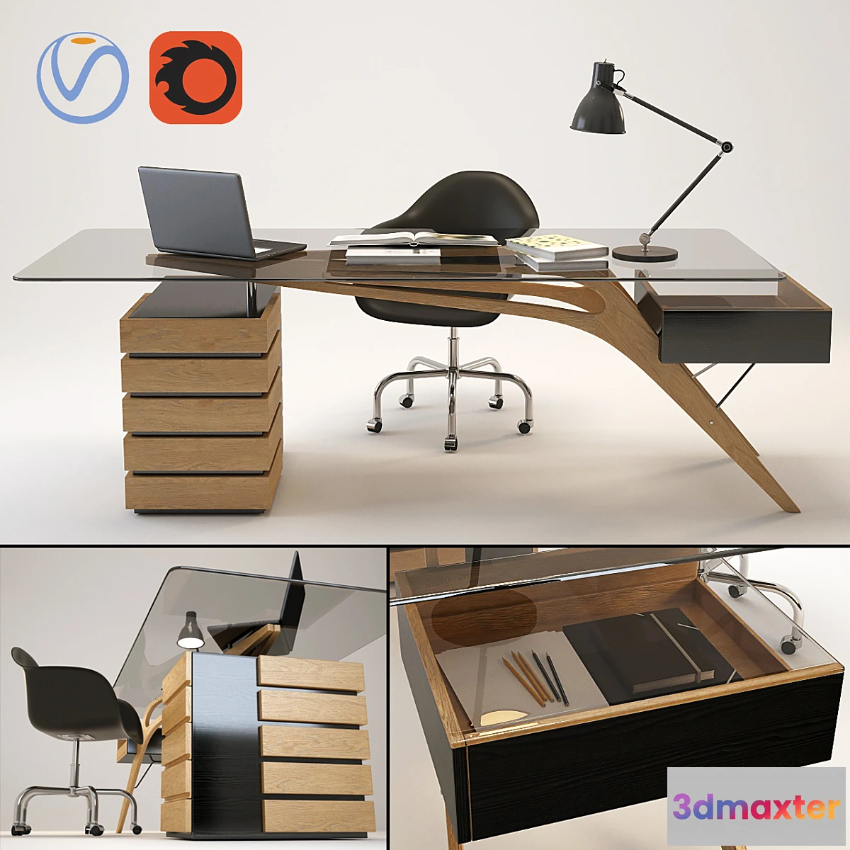 Desk CAVOUR by Zanotta Designer: Carlo Mollino Produced since 1949. Dimensions of the table: 237х90х75 cm Scene size: 237х140х135 cm 93893 polys