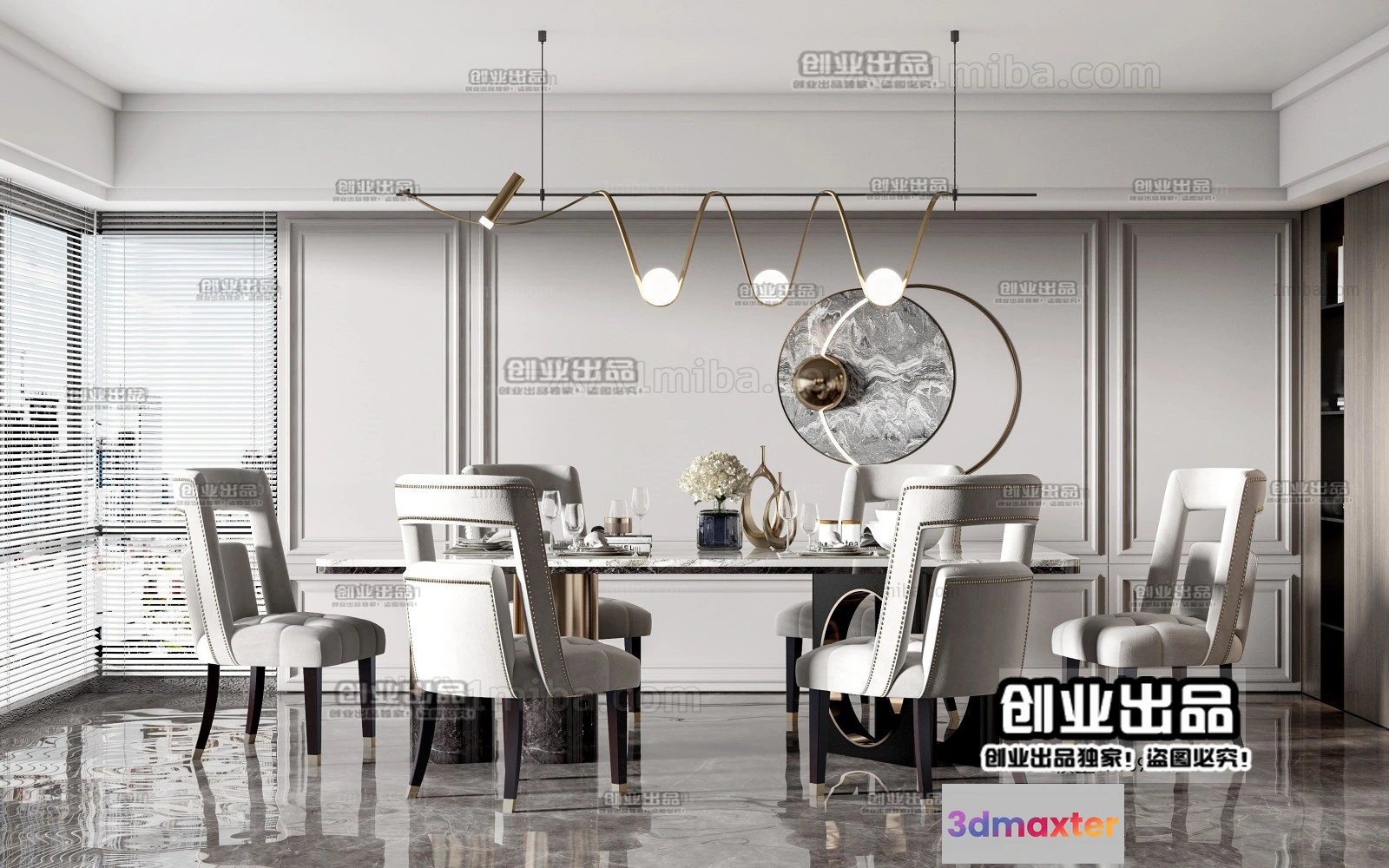 3D Models / 3D Scenes / Interior / Dining Room / Dining Room 3D Interior Scene – American Style – 012 3D Max