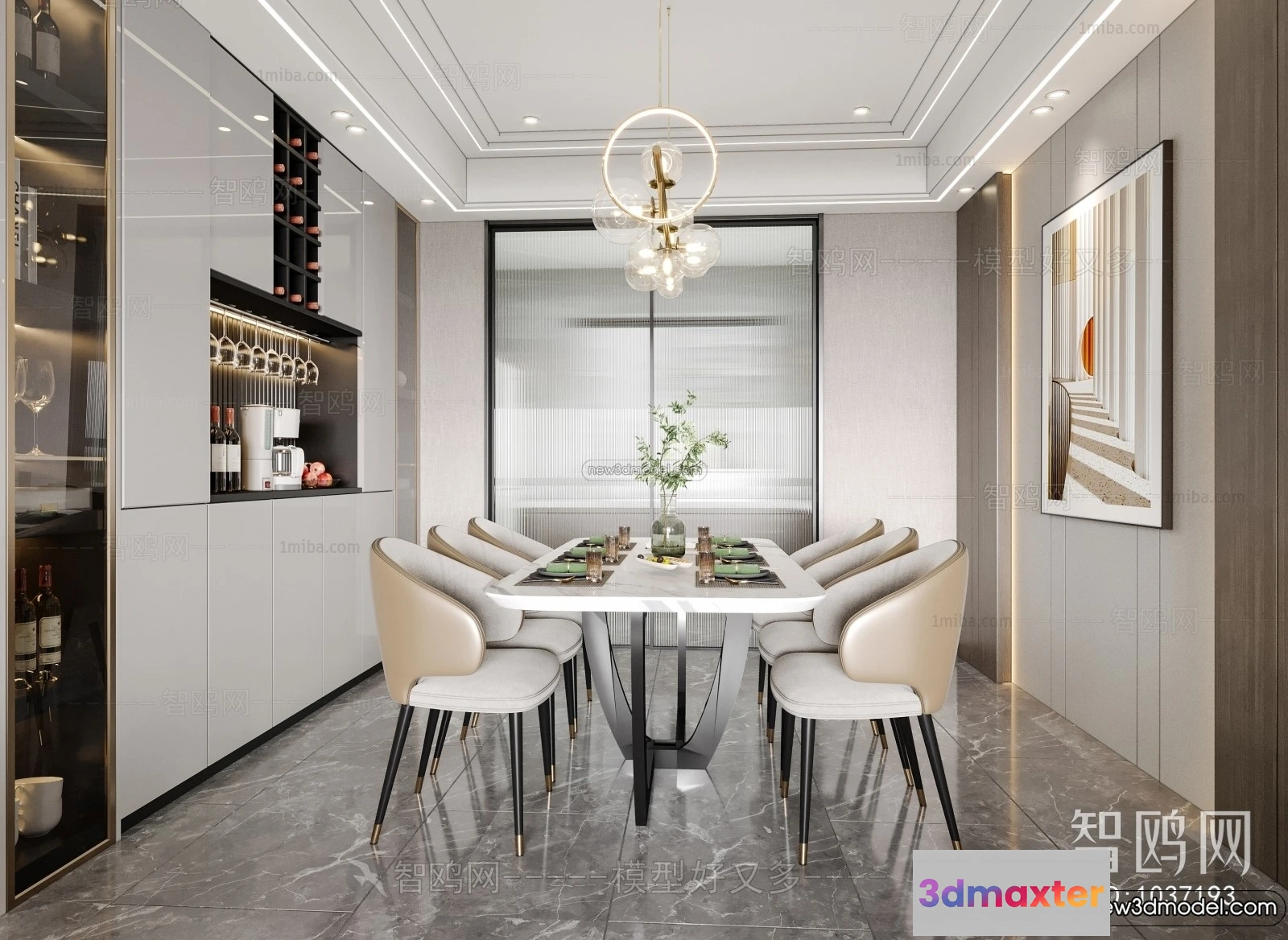3D Models / 3D Scenes / Interior / Dining Room / Dining Room – 3D Interior Scene – Italian Style – 013 3D Max