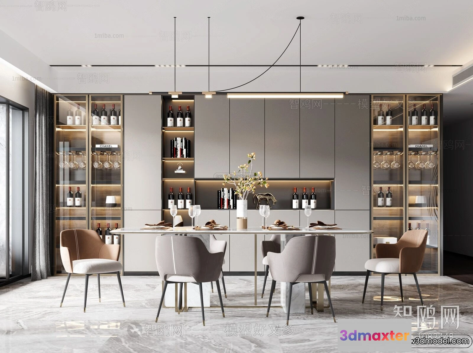 3D Models / 3D Scenes / Interior / Dining Room / Dining Room – 3D Interior Scene – Italian Style – 015 3D Max