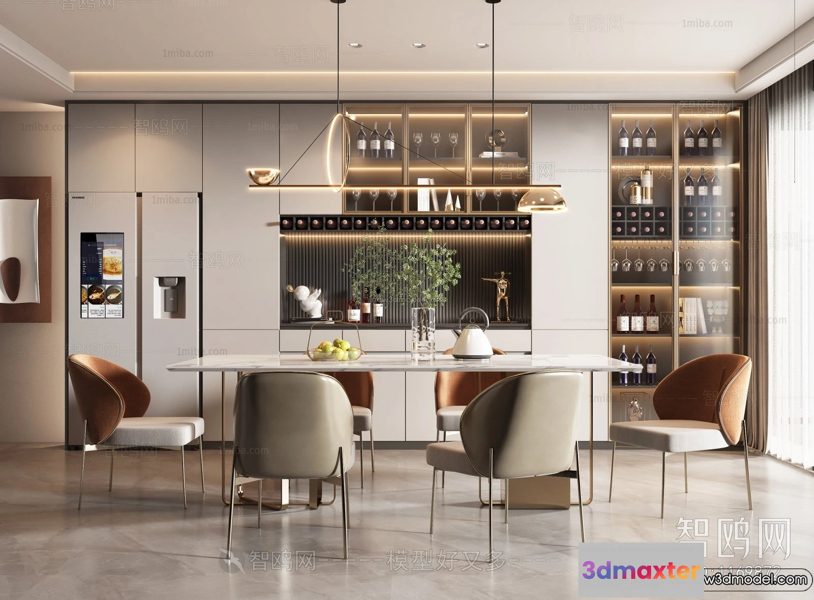 3D Models / 3D Scenes / Interior / Dining Room / Dining Room – 3D Interior Scene – Italian Style – 021 3D Max