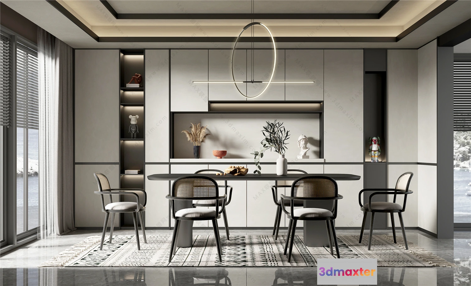 3D Models / 3D Scenes / Interior / Dining Room / Dining Room 3D Interior Scene Model – Wabi Sabi Style – 032 3D Max