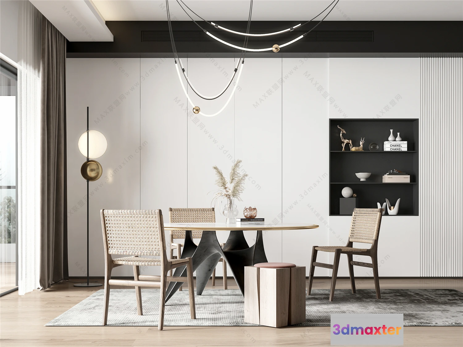 3D Models / 3D Scenes / Interior / Dining Room / Dining Room 3D Interior Scene Model – Wabi Sabi Style – 033 3D Max