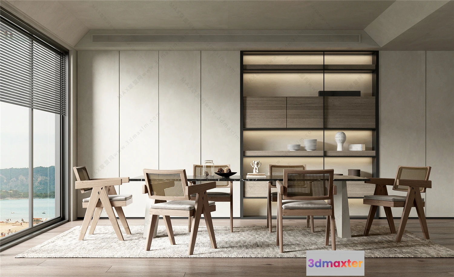 3D Models / 3D Scenes / Interior / Dining Room / Dining Room 3D Interior Scene Model – Wabi Sabi Style – 034 3D Max