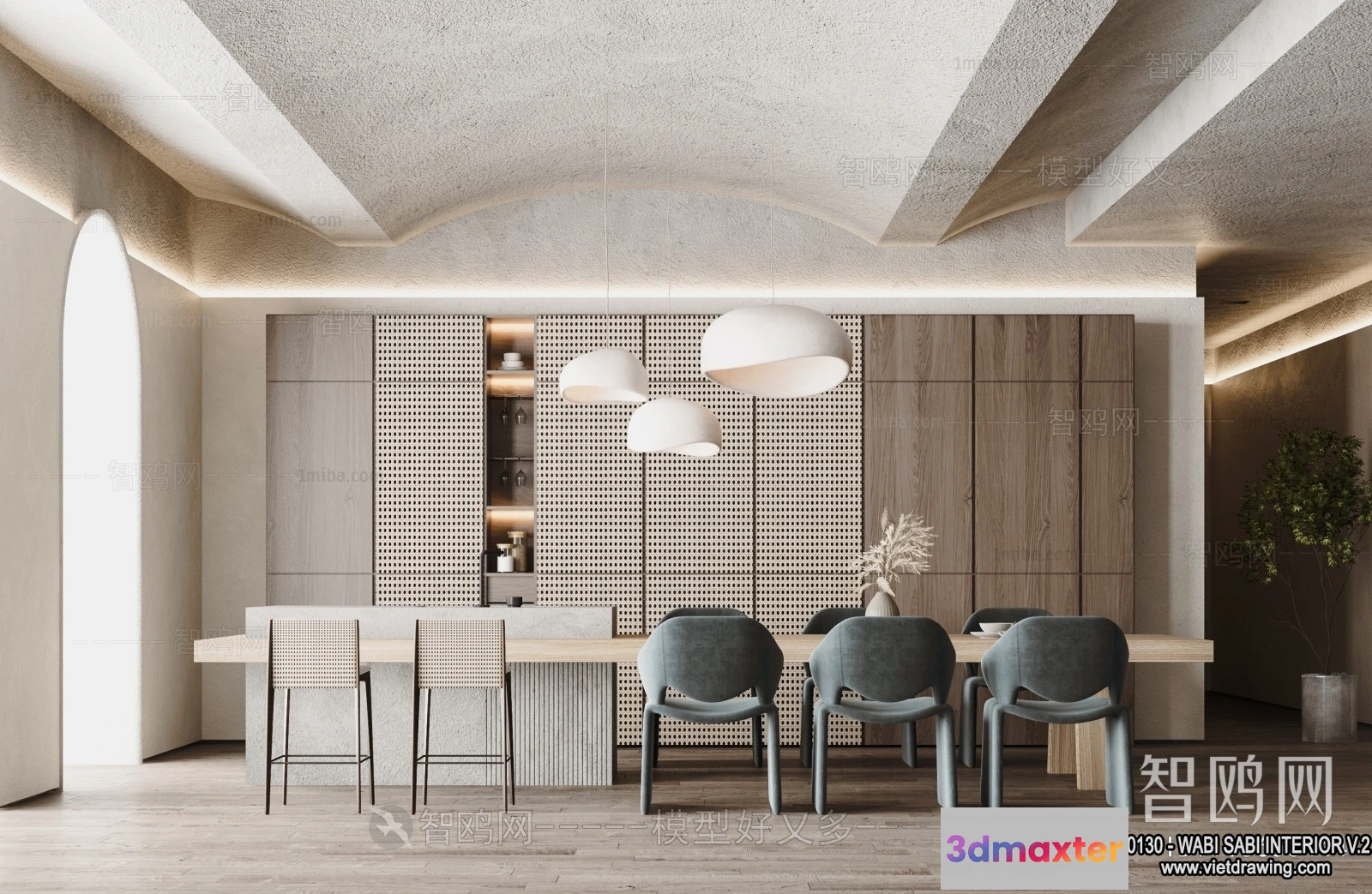 3D Models / 3D Scenes / Interior / Dining Room / Dining Room 3D Interior Scene Model – Wabi Sabi Style – 039 3D Max