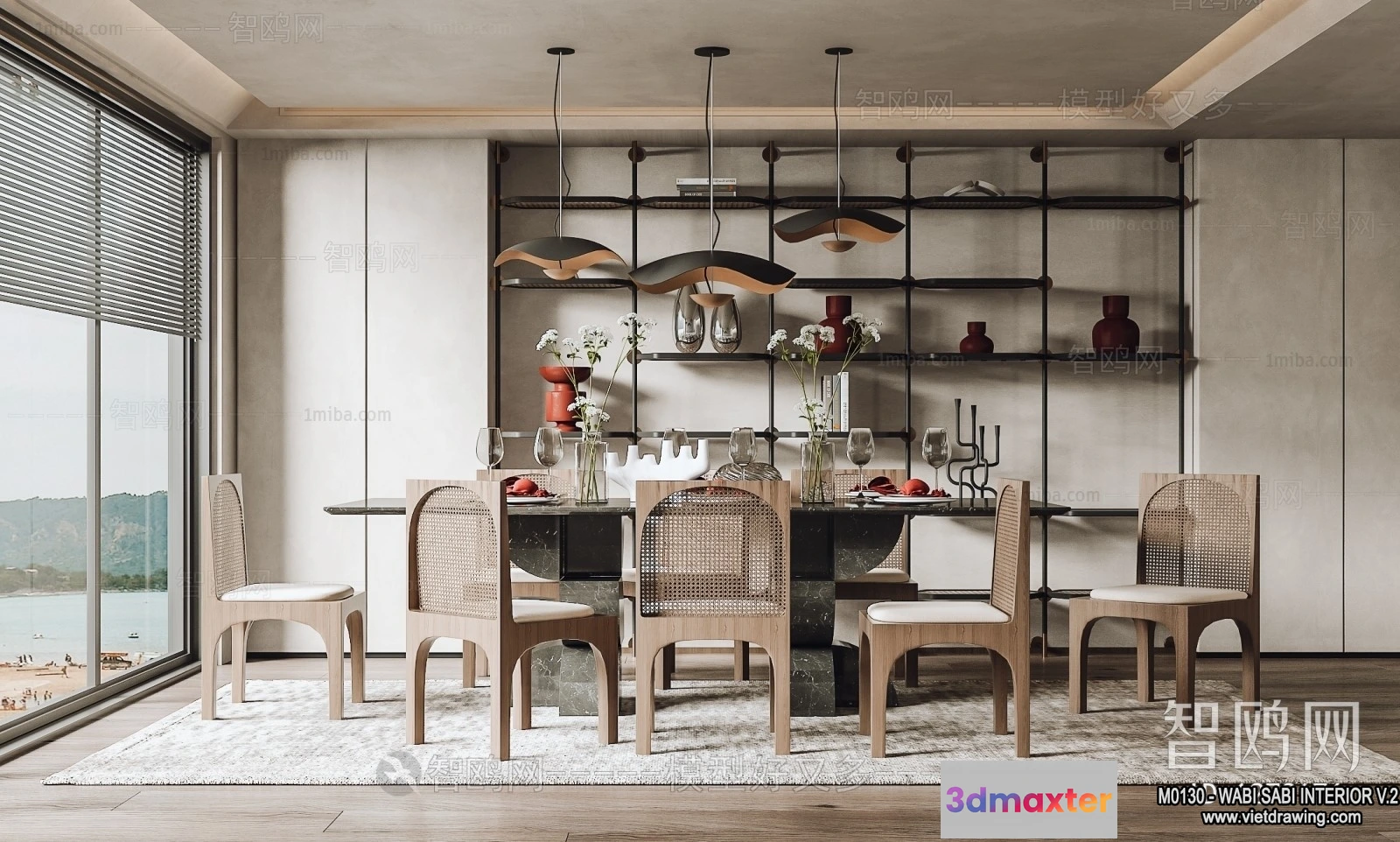 3D Models / 3D Scenes / Interior / Dining Room / Dining Room 3D Interior Scene Model – Wabi Sabi Style – 042 3D Max