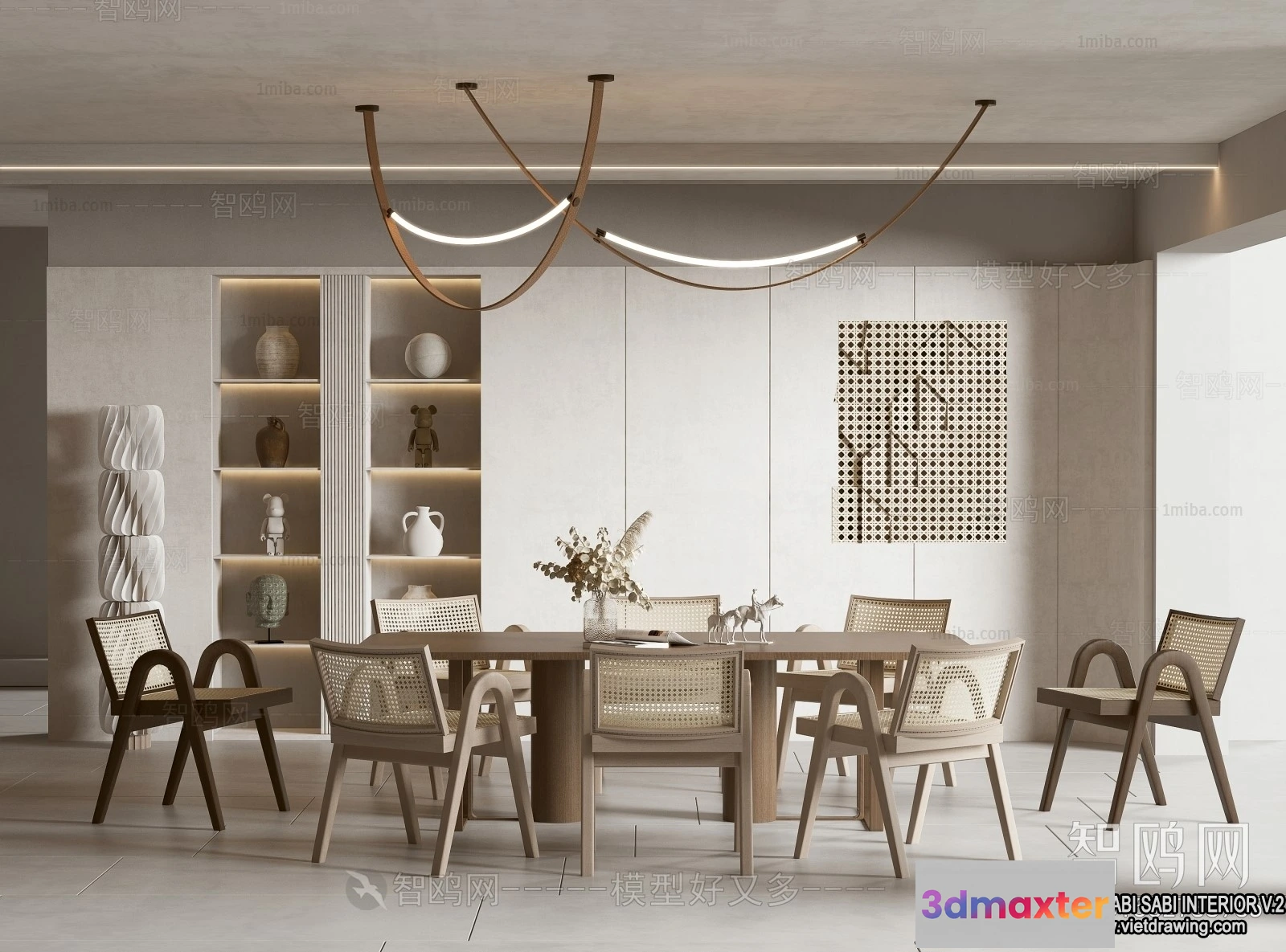 3D Models / 3D Scenes / Interior / Dining Room / Dining Room 3D Interior Scene Model – Wabi Sabi Style – 045 3D Max