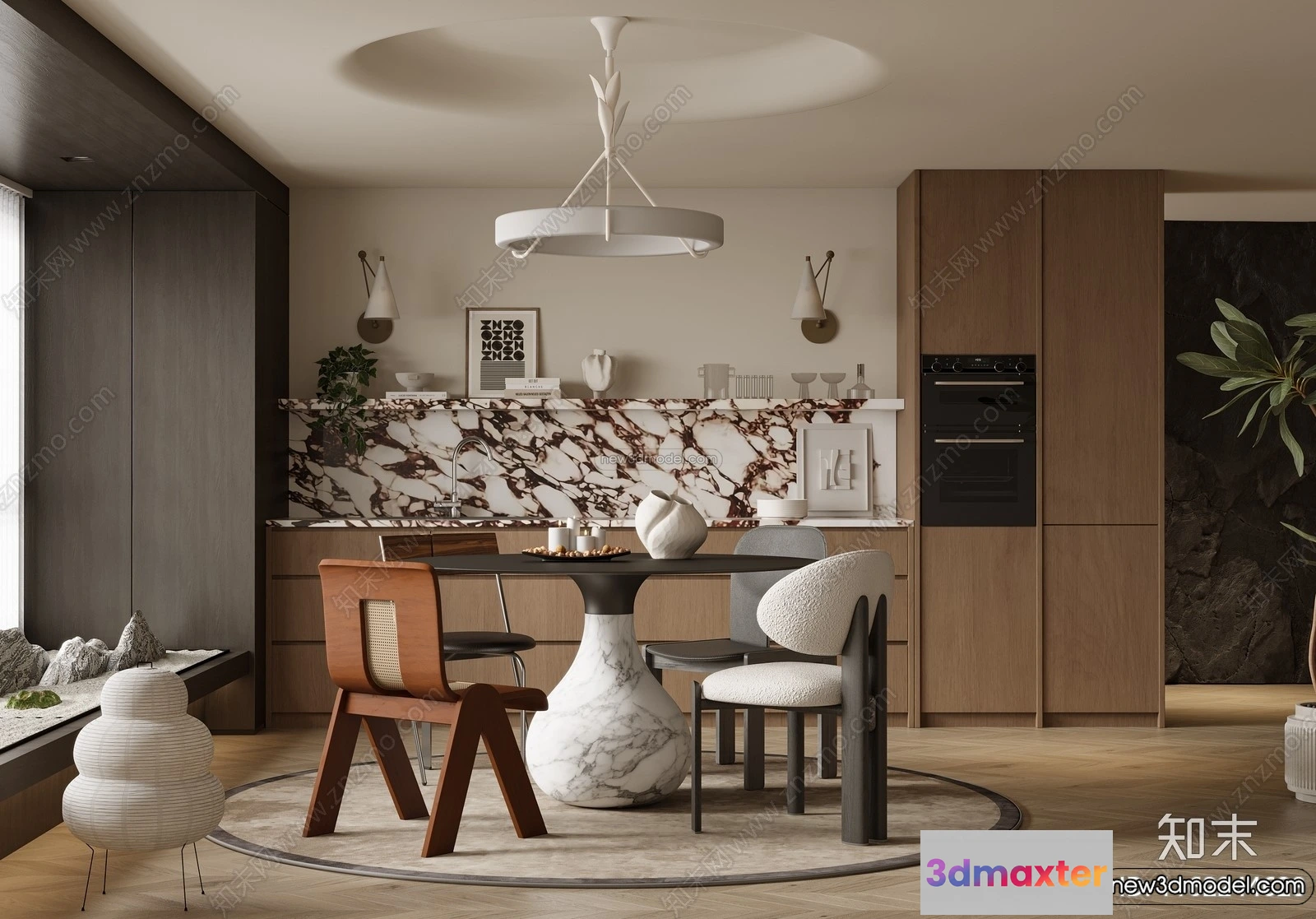 3D Models / 3D Scenes / Interior / Dining Room / Dining Room 3D Interior Scene Model – Wabi Sabi Style – 049 3D Max