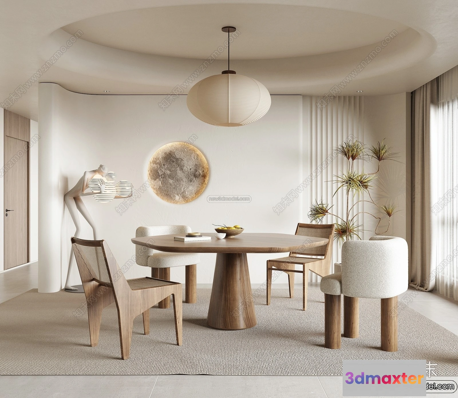 - Name: Dining Room 3D Interior Scene Model – Wabi Sabi Style – 050
