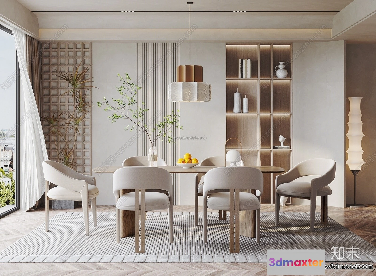 3D Models / 3D Scenes / Interior / Dining Room / Dining Room 3D Interior Scene Model – Wabi Sabi Style – 054 3D Max