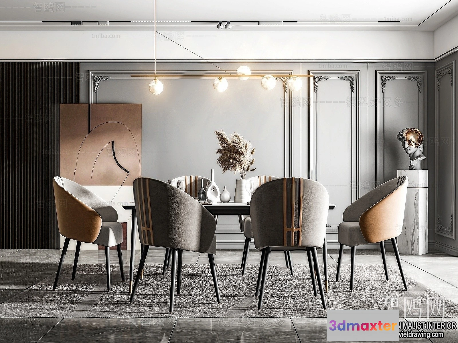 3D Models / 3D Scenes / Interior / Dining Room / Dining Room – Minimalist Style – 3D Interior Scene – 005 3D Max