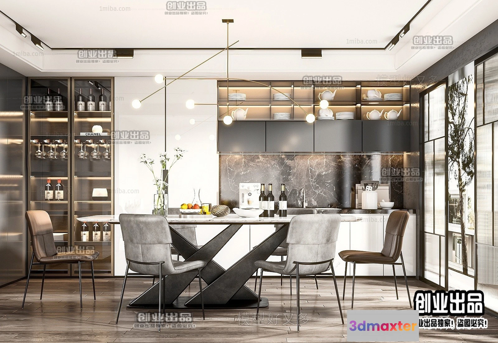 3D Models / 3D Scenes / Interior / Dining Room / Dining Room – Modern Style Interior 3D Scenes – 032 3D Max