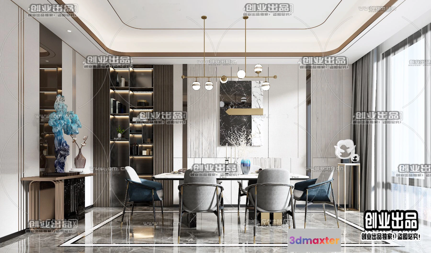 3D Models / 3D Scenes / Interior / Dining Room / Dining Room – Modern Style Interior 3D Scenes – 045 3D Max