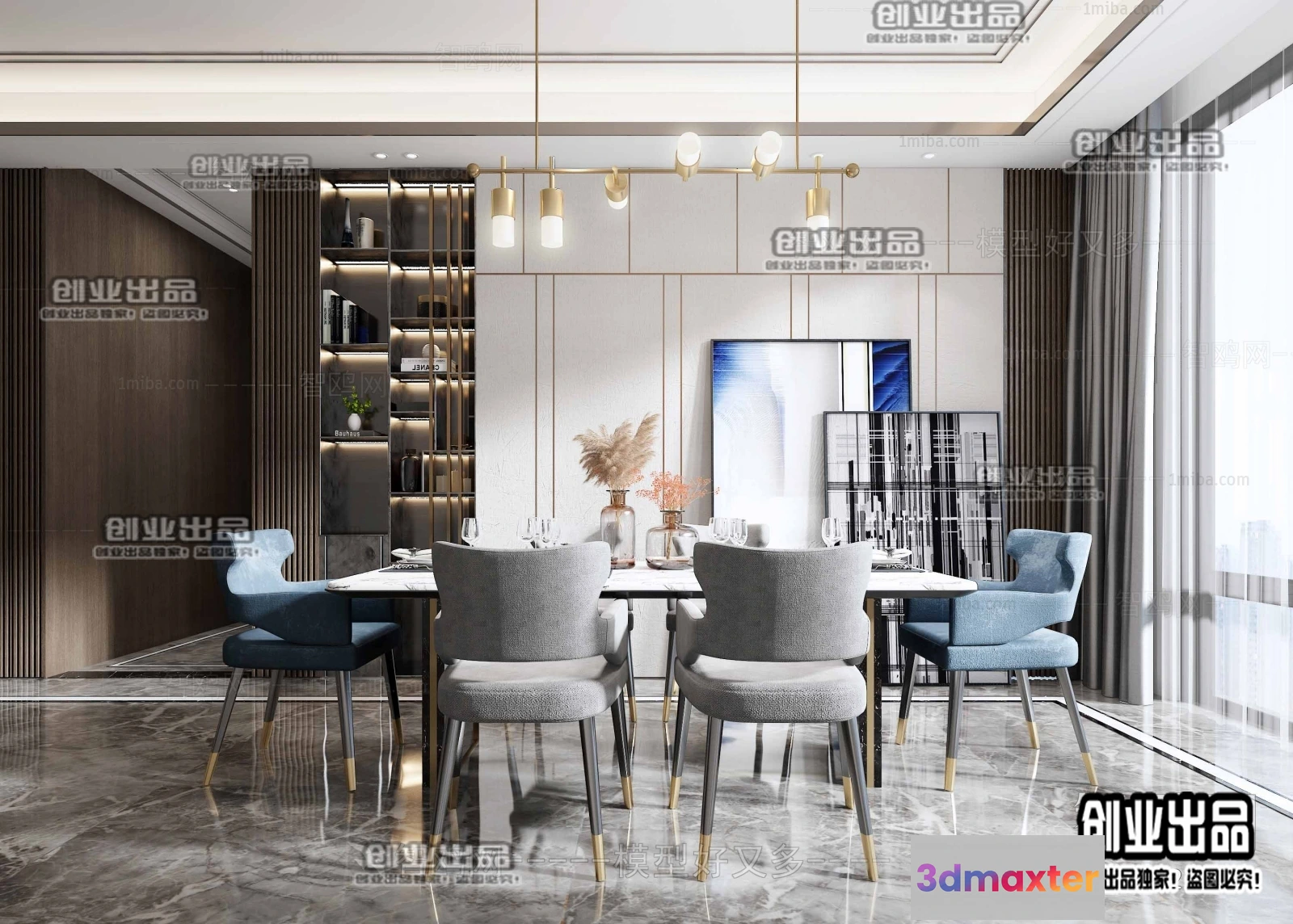 3D Models / 3D Scenes / Interior / Dining Room / Dining Room – Modern Style Interior 3D Scenes – 047 3D Max