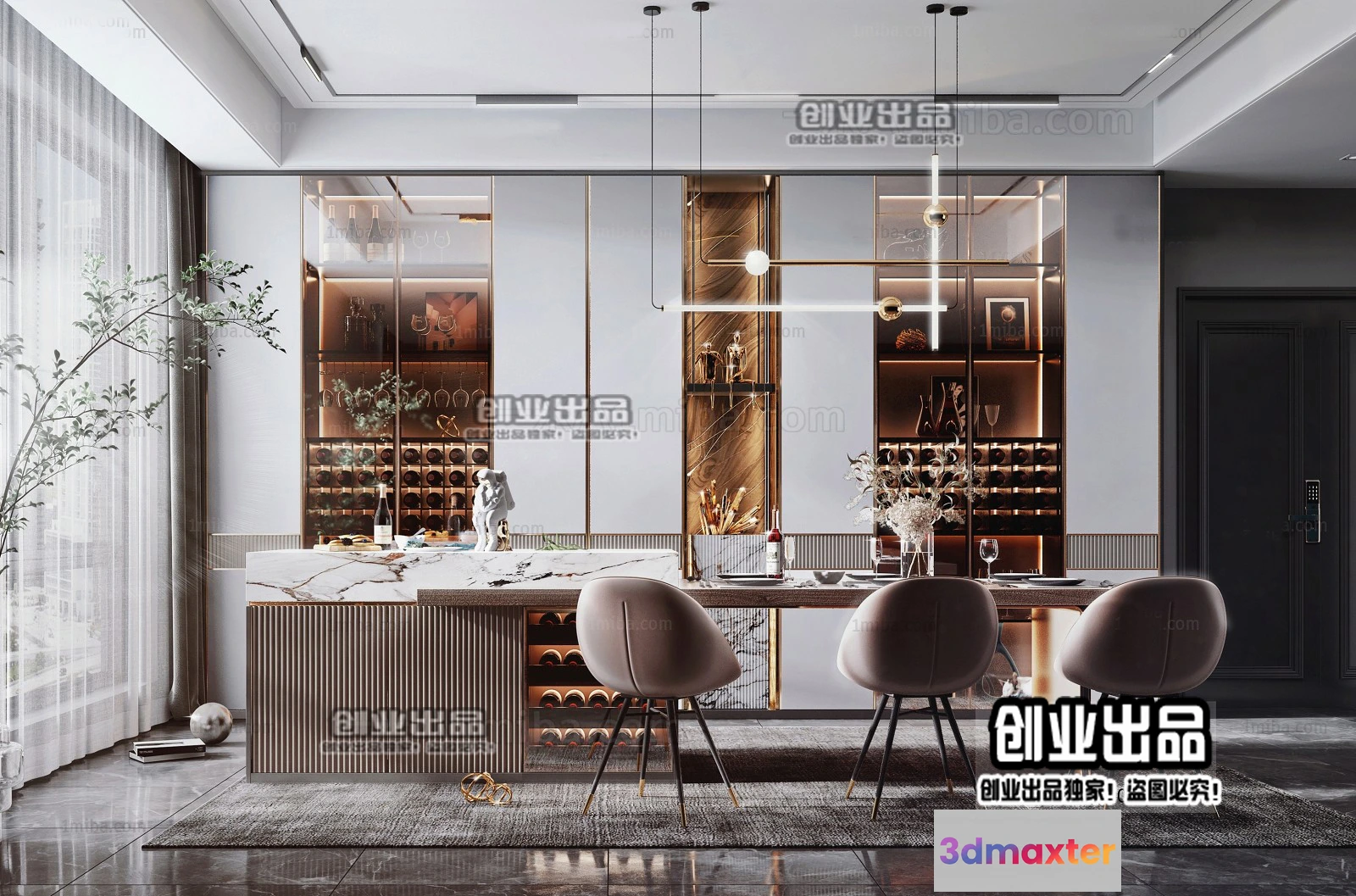 3D Models / 3D Scenes / Interior / Dining Room / Dining Room – Modern Style Interior 3D Scenes – 054 3D Max