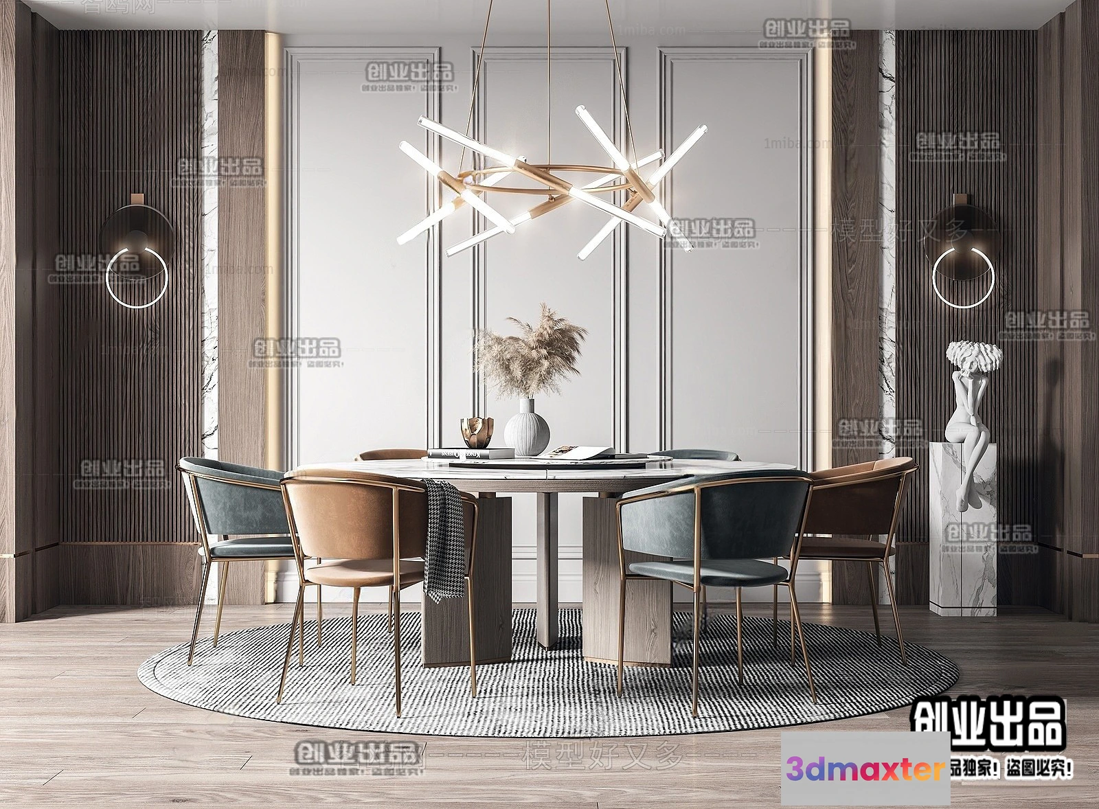 3D Models / 3D Scenes / Interior / Dining Room / Dining Room – Modern Style Interior 3D Scenes – 063 3D Max
