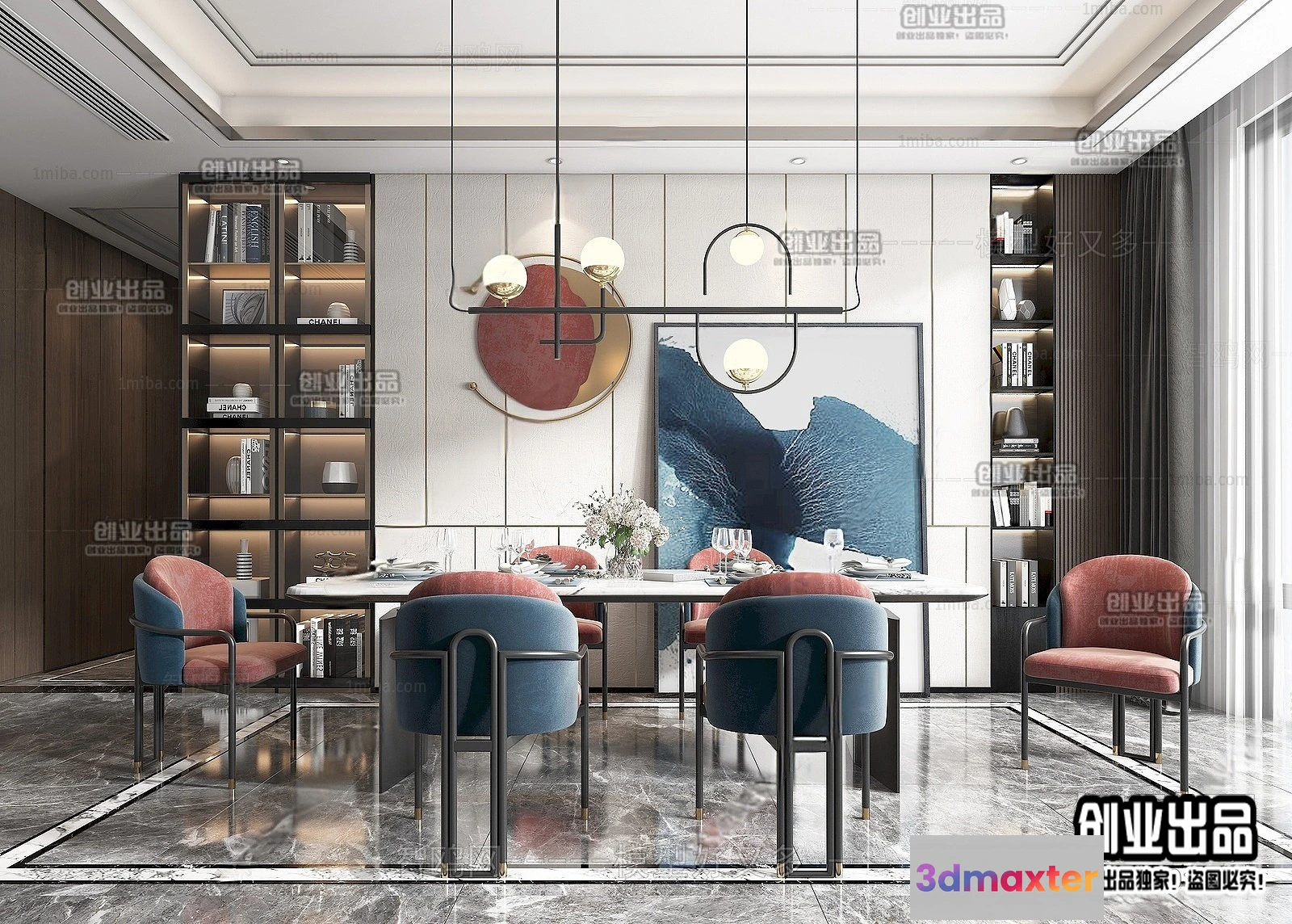 3D Models / 3D Scenes / Interior / Dining Room / Dining Room – Modern Style Interior 3D Scenes – 065 3D Max