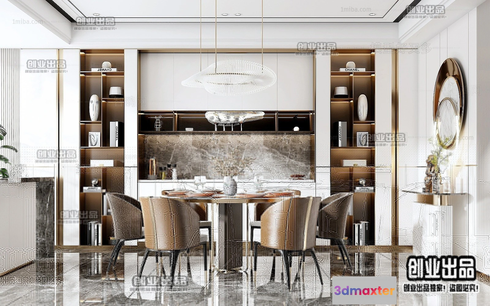 - Name: Dining Room – Modern Style Interior 3D Scenes – 076