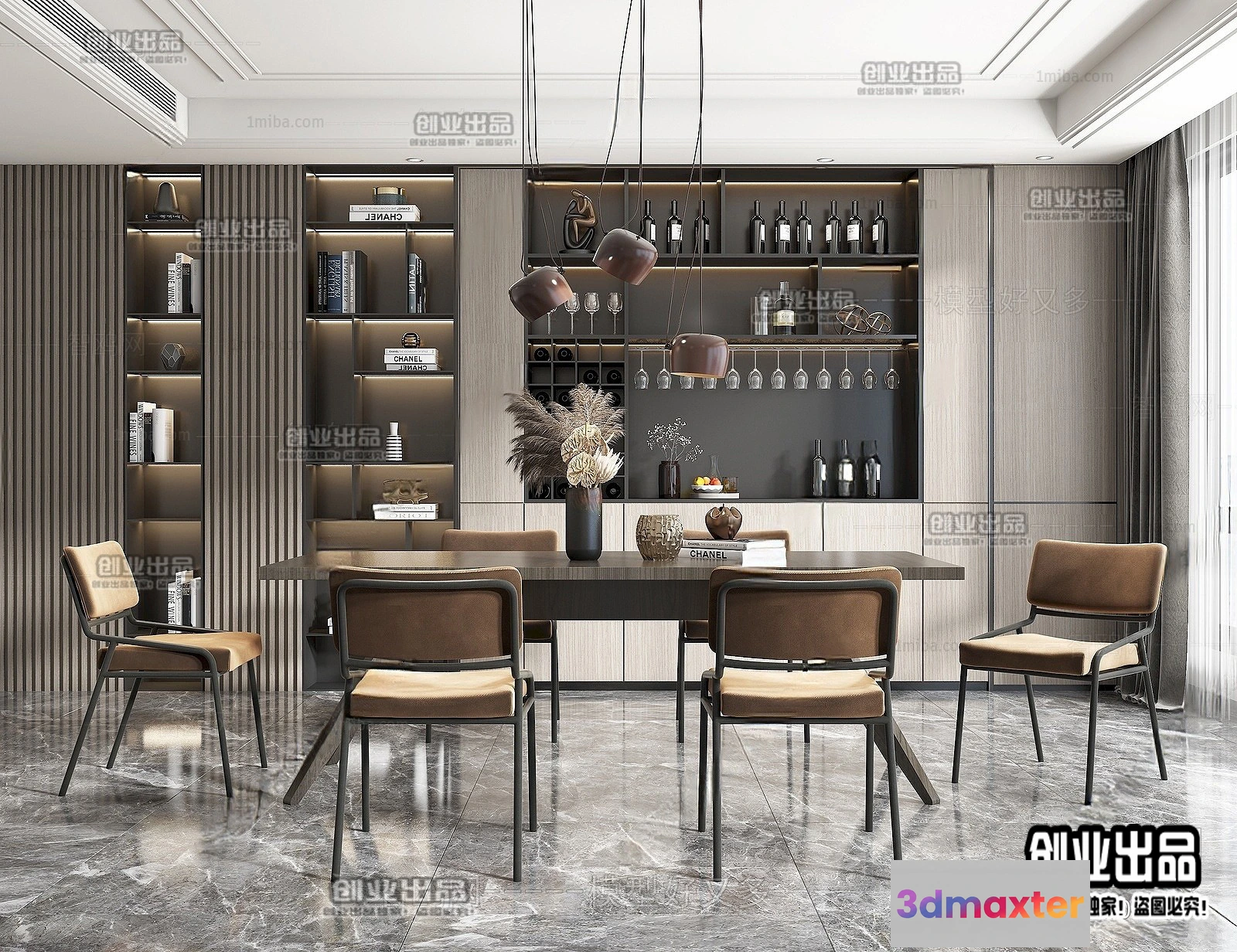 Dining Room – Modern Style Interior 3D Scenes – 091 3D Max