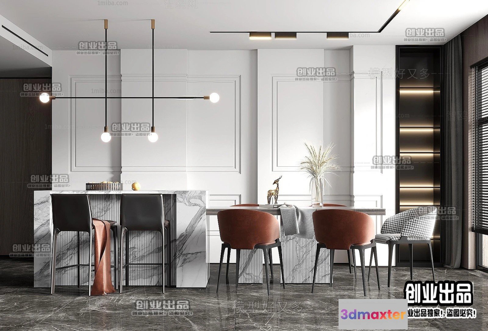 3D Models / 3D Scenes / Interior / Dining Room / Dining Room – Modern Style Interior 3D Scenes – 094 3D Max