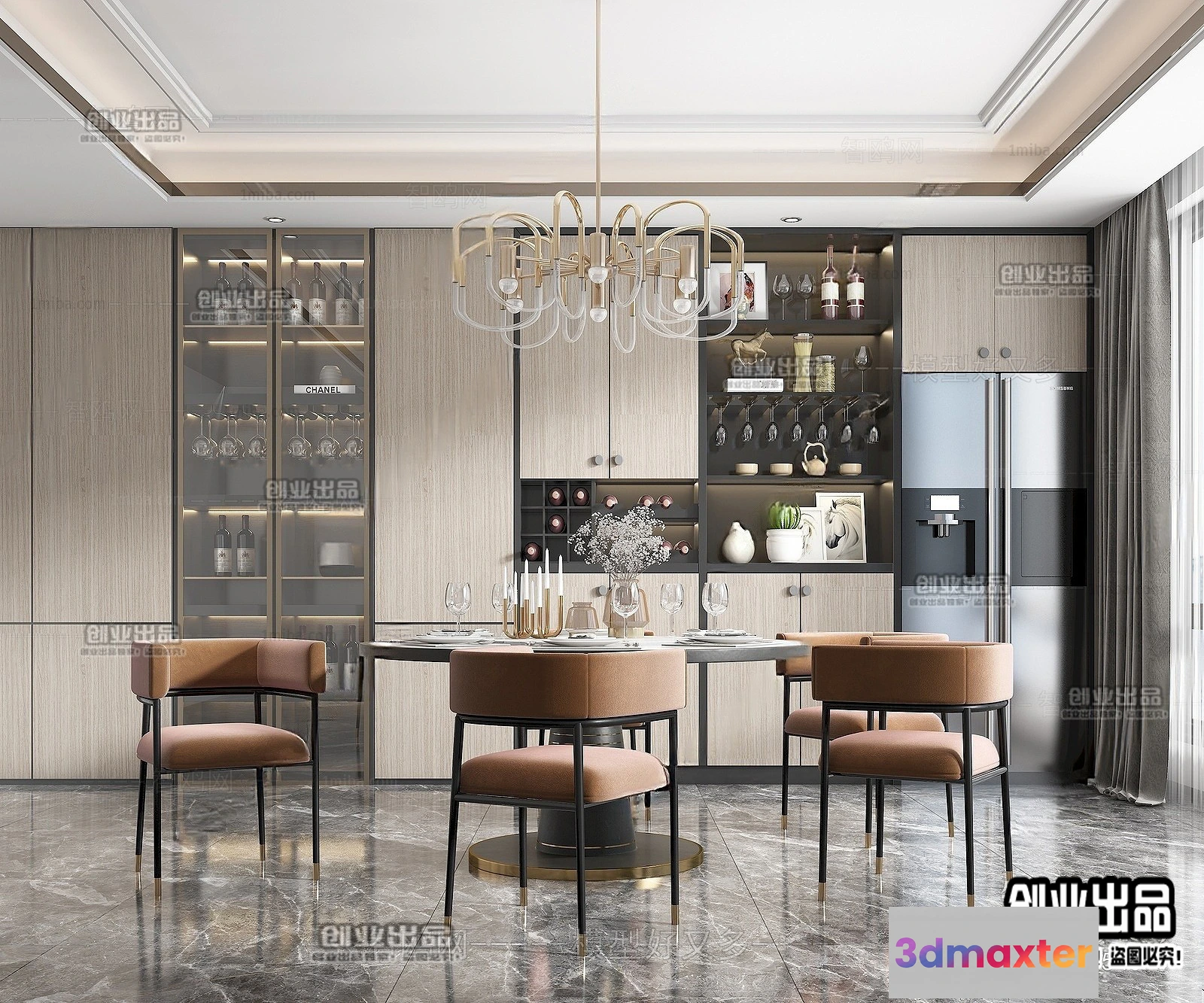 Dining Room – Modern Style Interior 3D Scenes – 100 3D Max