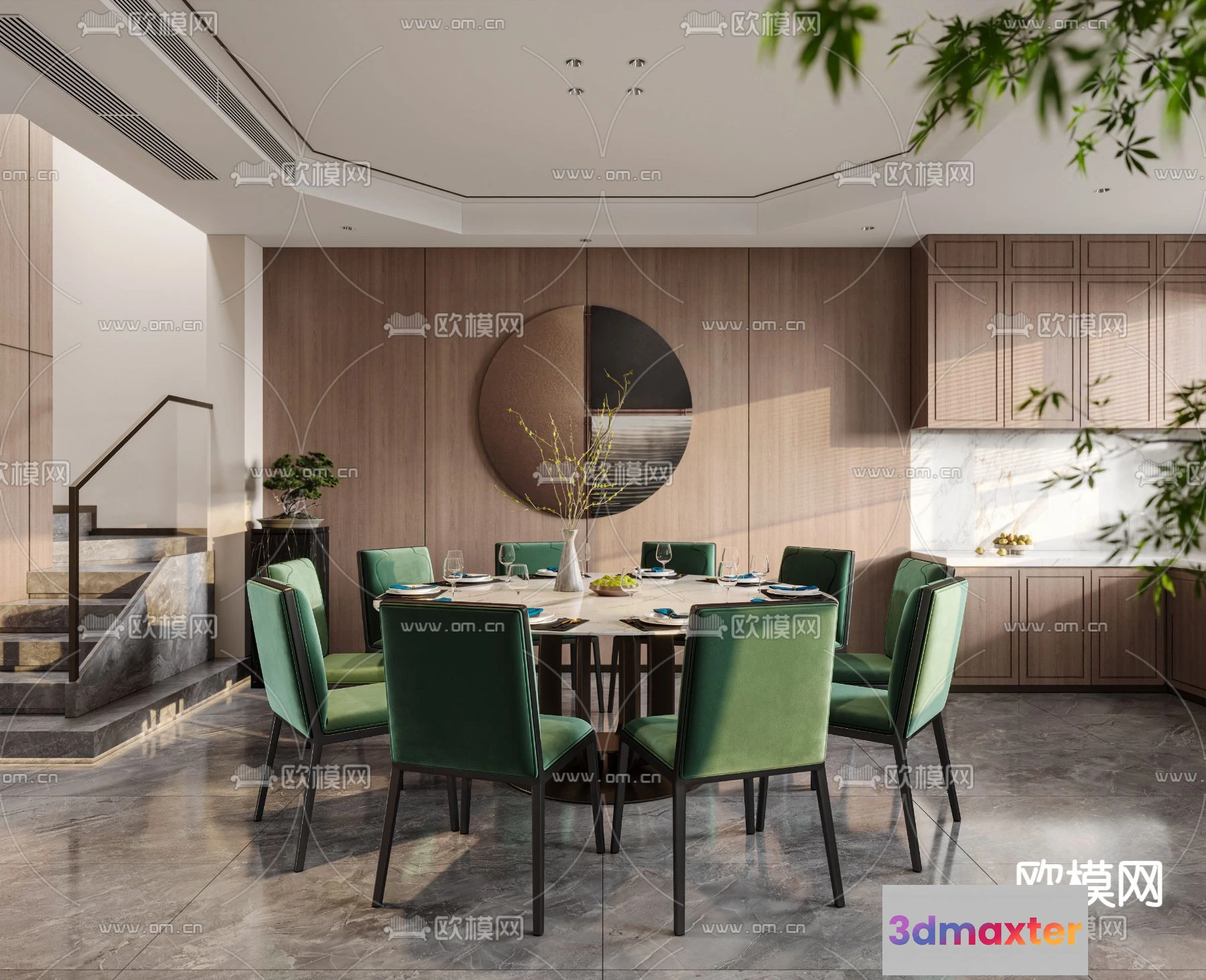 3D Models / 3D Scenes / Interior / Dining Room / DINING ROOM SETS – CORONA – 3D MODEL – 1379