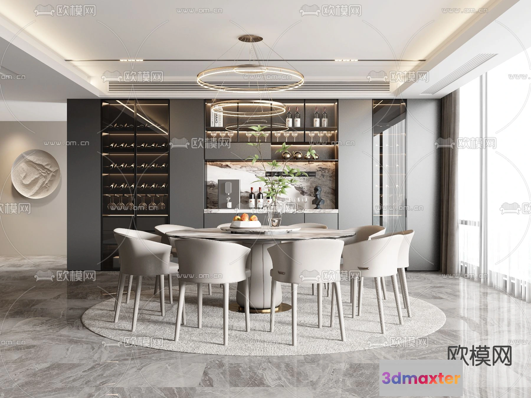 3D Models / 3D Scenes / Interior / Dining Room / DINING ROOM SETS – VRAY / CORONA – 3D MODEL – 1361