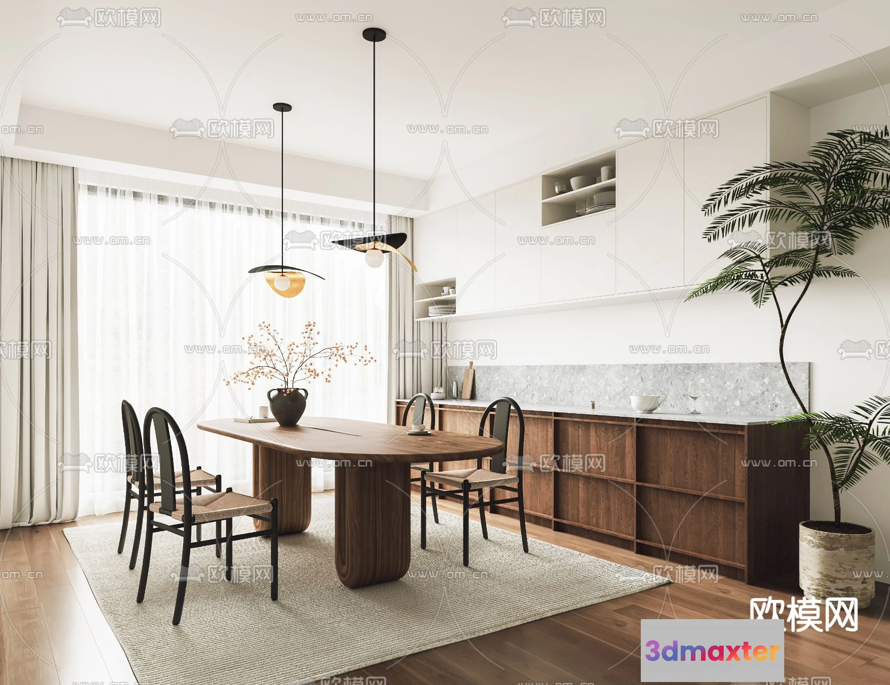 3D Models / 3D Scenes / Interior / Dining Room / DINING ROOM SETS – VRAY / CORONA – 3D MODEL – 1381