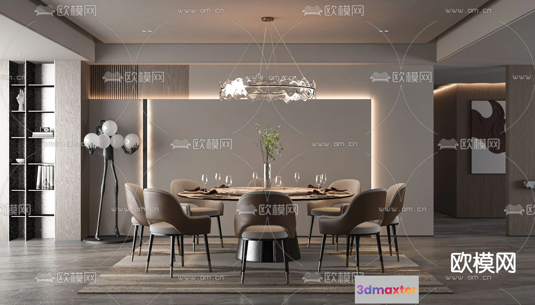 3D Models / 3D Scenes / Interior / Dining Room / DINING ROOM SETS – VRAY / CORONA – 3D MODEL – 1398