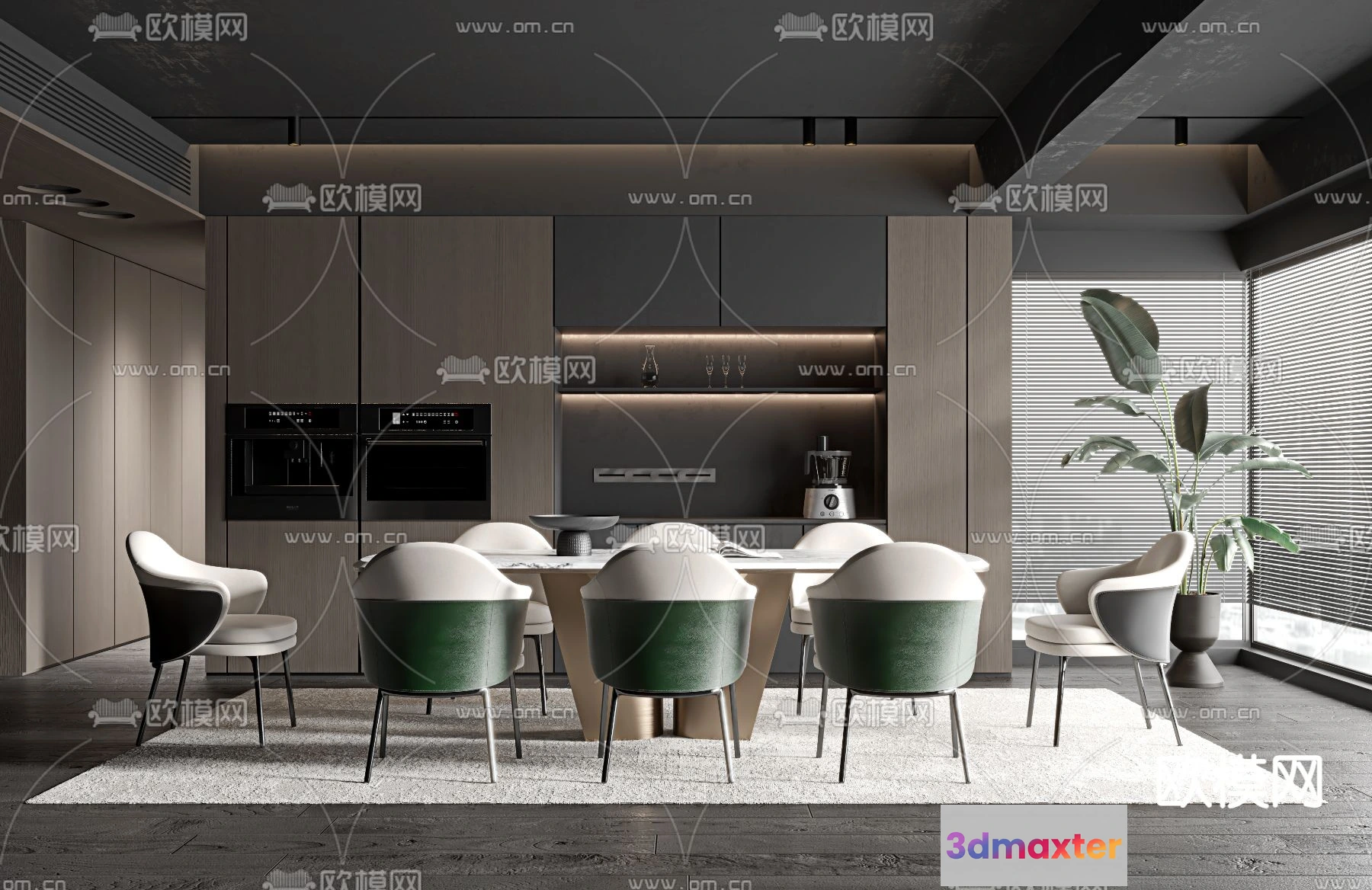 3D Models / 3D Scenes / Interior / Dining Room / DINING ROOM SETS – VRAY / CORONA – 3D MODEL – 1410