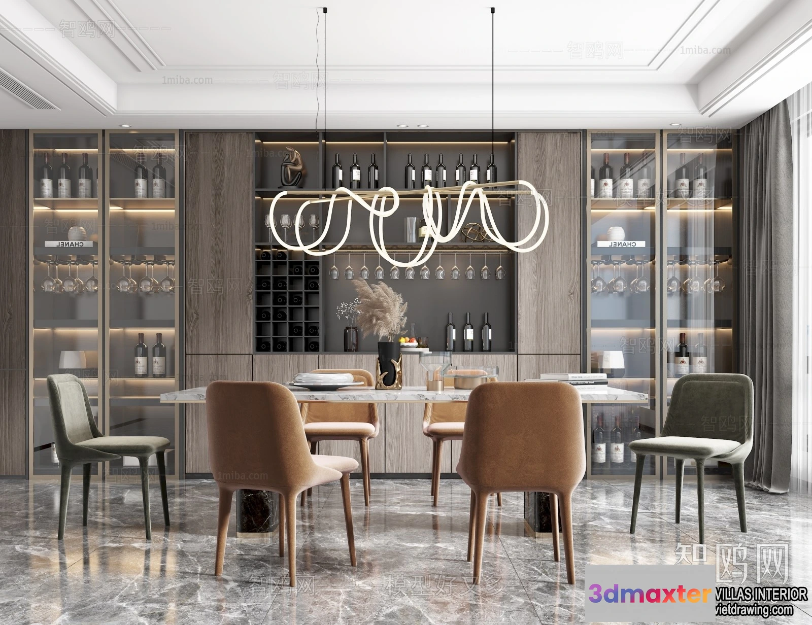 3D Models / 3D Scenes / Interior / Dining Room / Dining Room – Villas 3D Interior Scene – 3D Models – 015 3D Max