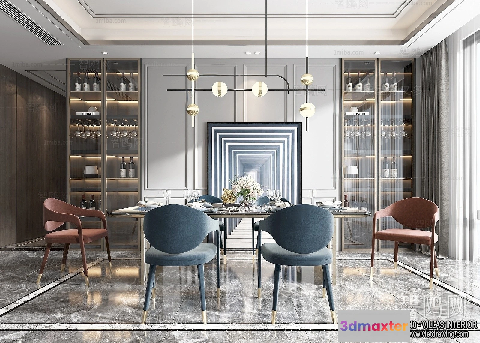 3D Models / 3D Scenes / Interior / Dining Room / Dining Room – Villas 3D Interior Scene – 3D Models – 017 3D Max
