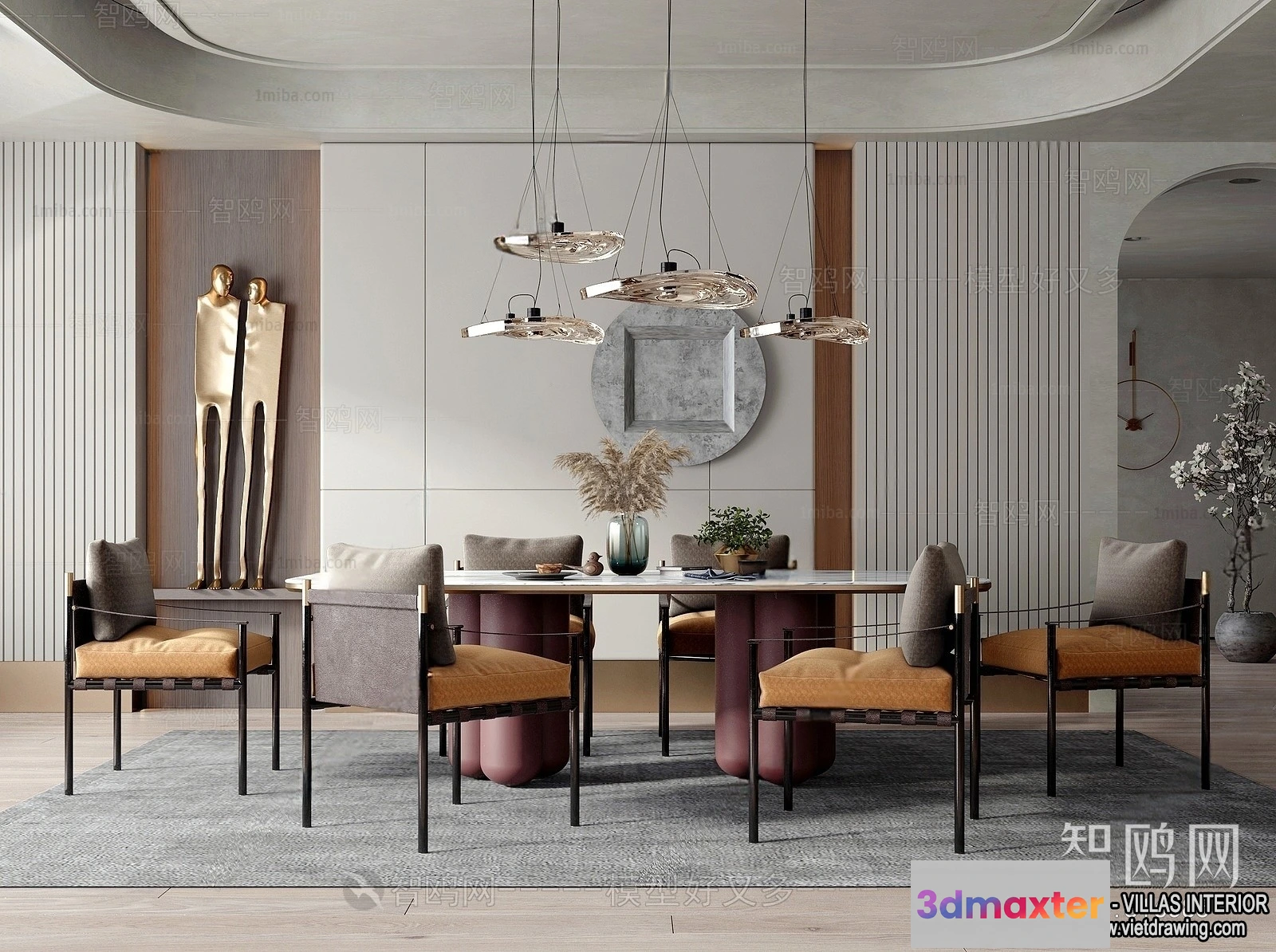 3D Models / 3D Scenes / Interior / Dining Room / Dining Room – Villas 3D Interior Scene – 3D Models – 028 3D Max
