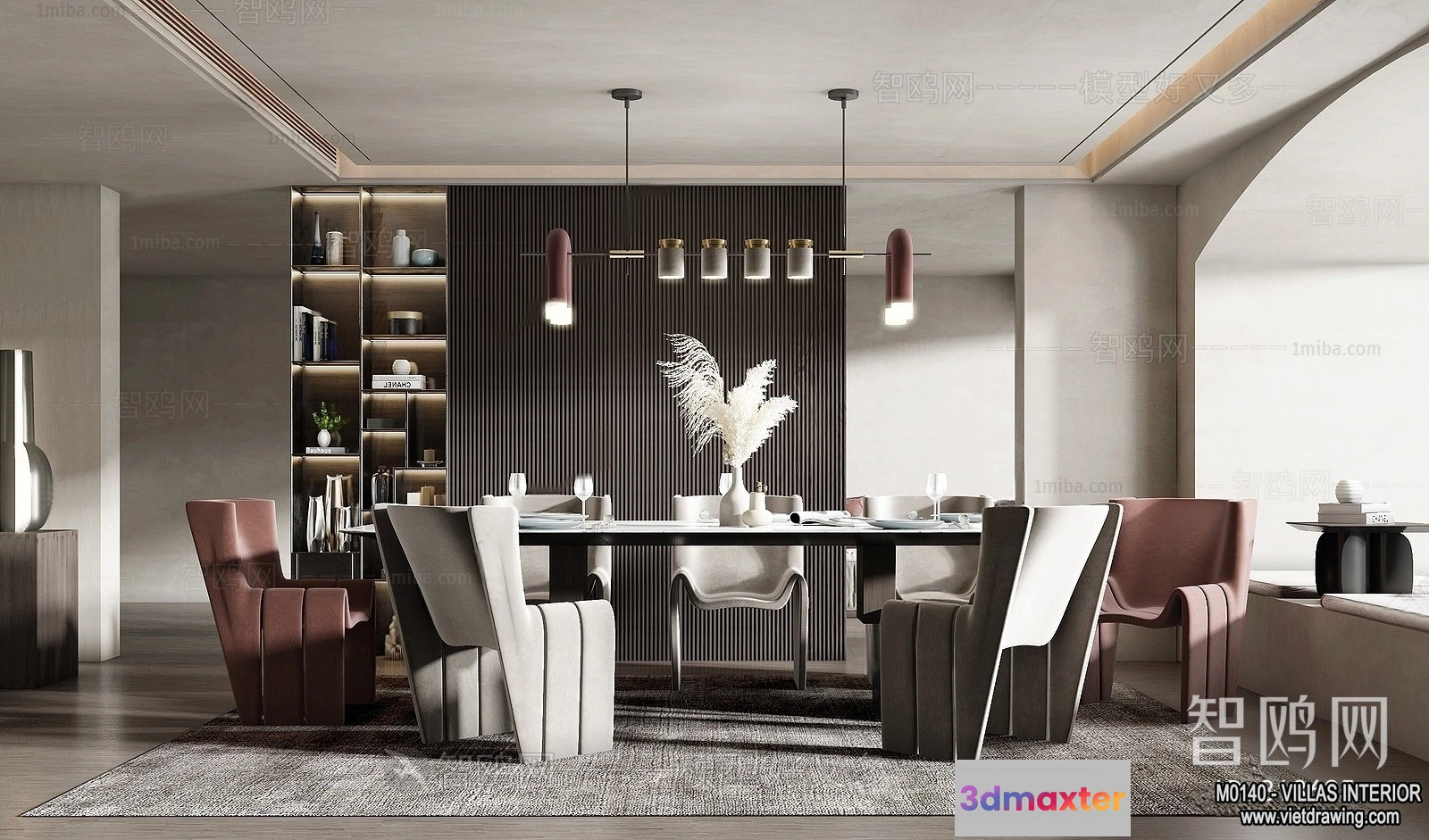 3D Models / 3D Scenes / Interior / Dining Room / Dining Room – Villas 3D Interior Scene – 3D Models – 052 3D Max