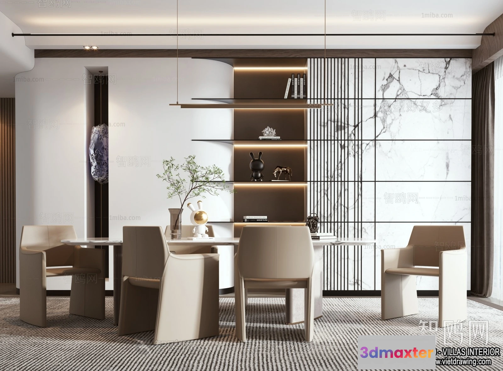 3D Models / 3D Scenes / Interior / Dining Room / Dining Room – Villas 3D Interior Scene – 3D Models – 057 3D Max