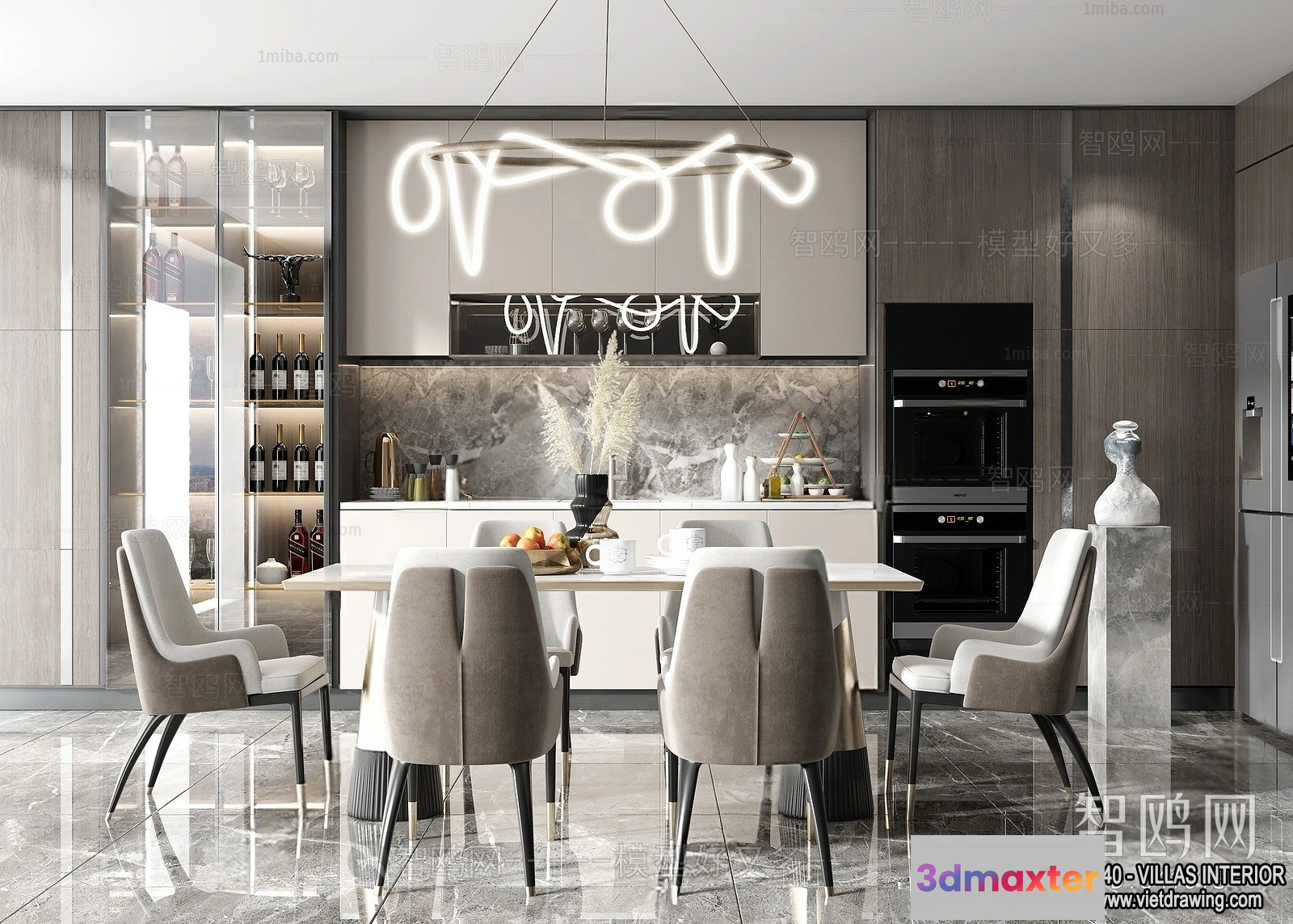 3D Models / 3D Scenes / Interior / Dining Room / Dining Room – Villas 3D Interior Scene – 3D Models – 073 3D Max