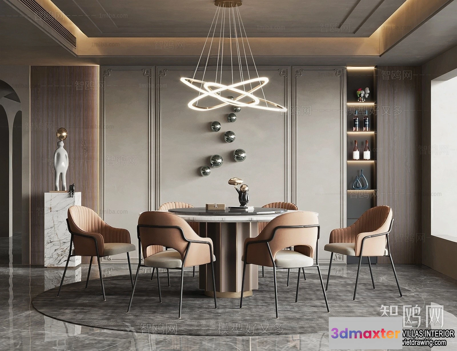 3D Models / 3D Scenes / Interior / Dining Room / Dining Room – Villas 3D Interior Scene – 3D Models – 080 3D Max