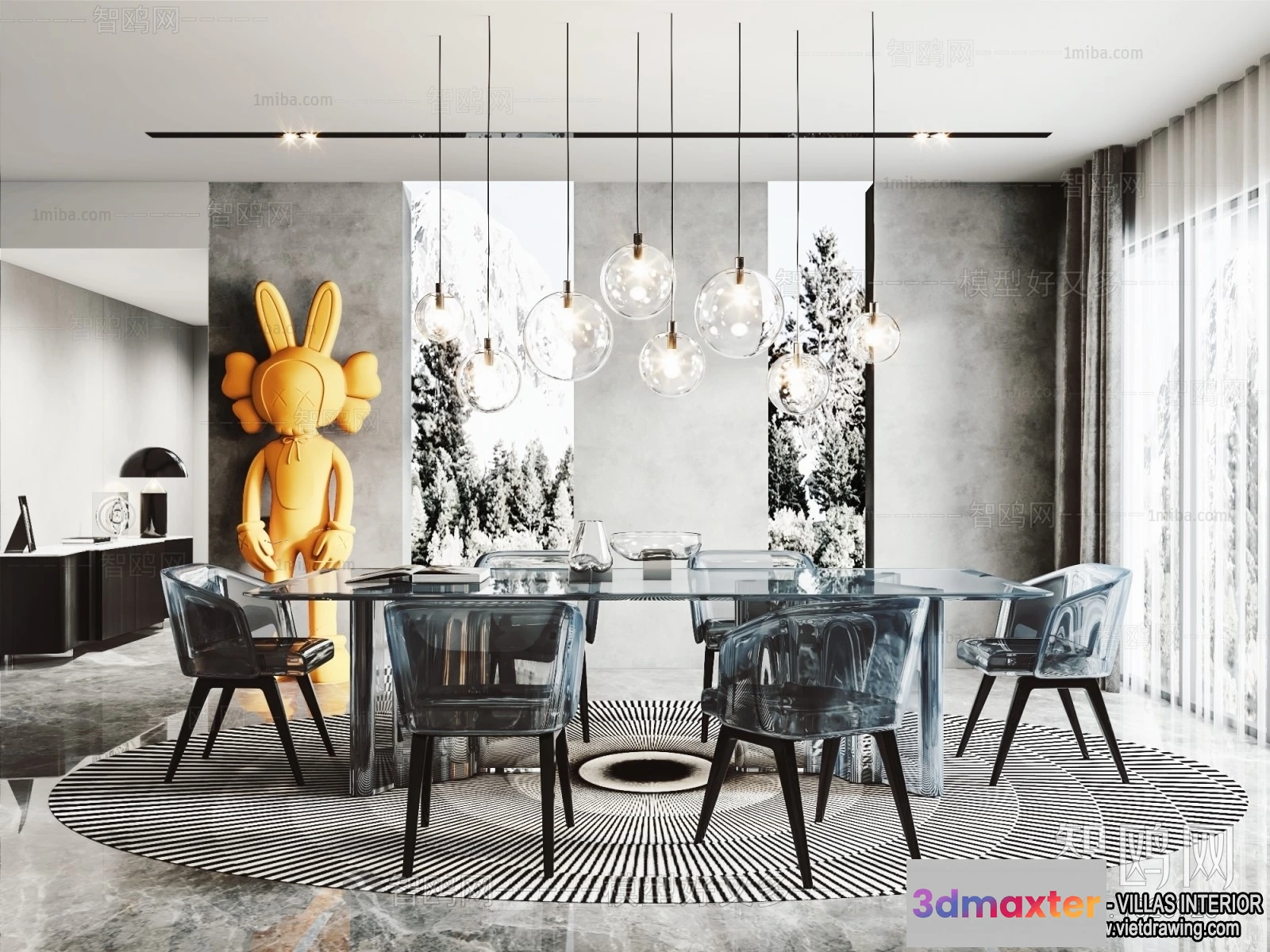 3D Models / 3D Scenes / Interior / Dining Room / Dining Room – Villas 3D Interior Scene – 3D Models – 087 3D Max