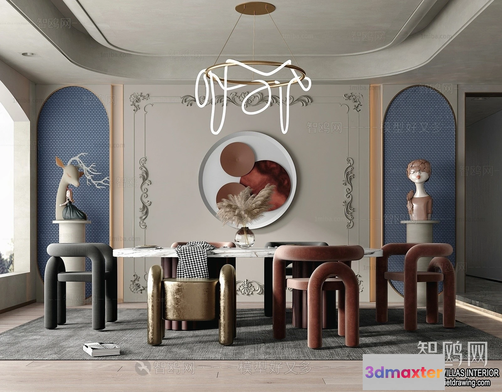 3D Models / 3D Scenes / Interior / Dining Room / Dining Room – Villas 3D Interior Scene – 3D Models – 091 3D Max