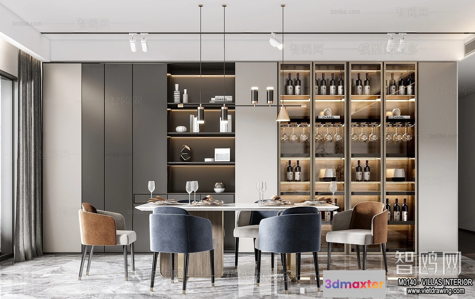 3D Models / 3D Scenes / Interior / Dining Room / Dining Room – Villas 3D Interior Scene – 3D Models – 105 3D Max